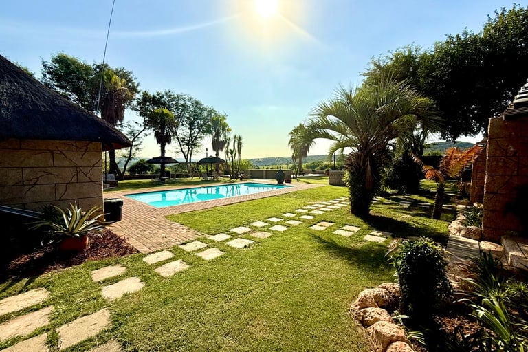 Nestled near Cullinan Mines, Bush Billa Lodge offers easy access to hiking, ziplining, and wildlife walks.